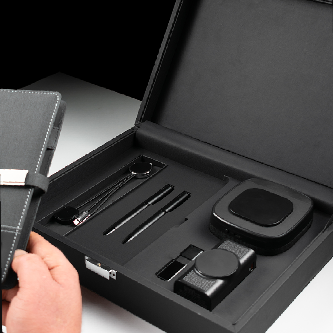 - Smart organizer with built-in 8,000mAh wireless power bank